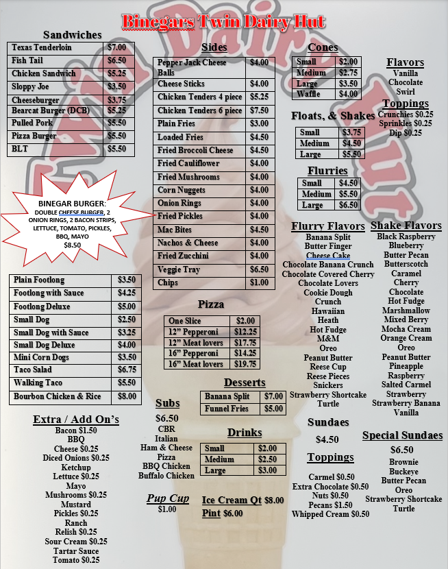 Twin Dairy Hut Menu